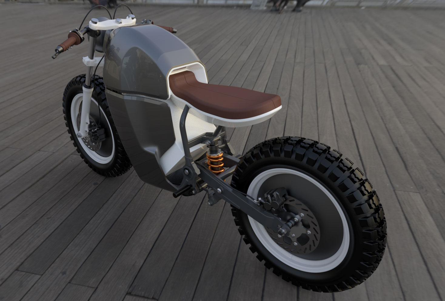 Have updated the sketch surfaces on the xj600. Tried something different to lighten the body. The front of the lower farings now aligns with the contours of the frame to see how that works out. The bike definitely looks lighter. However on the next iteration I might re-establish the lower air intake to get more direct air cooling to the controller box which is mounted low. and to stop it looking so adventure/scrambler in style. Still need to work on the inner casing that covers the battery. Thinking about joining it with the seat cover below the hoop frame. However I want to illude to a mechanical aesthetic on the inner covers to pull visual interest to the workings in a similar way that shiny engines pull attention in ICE motorbikes.