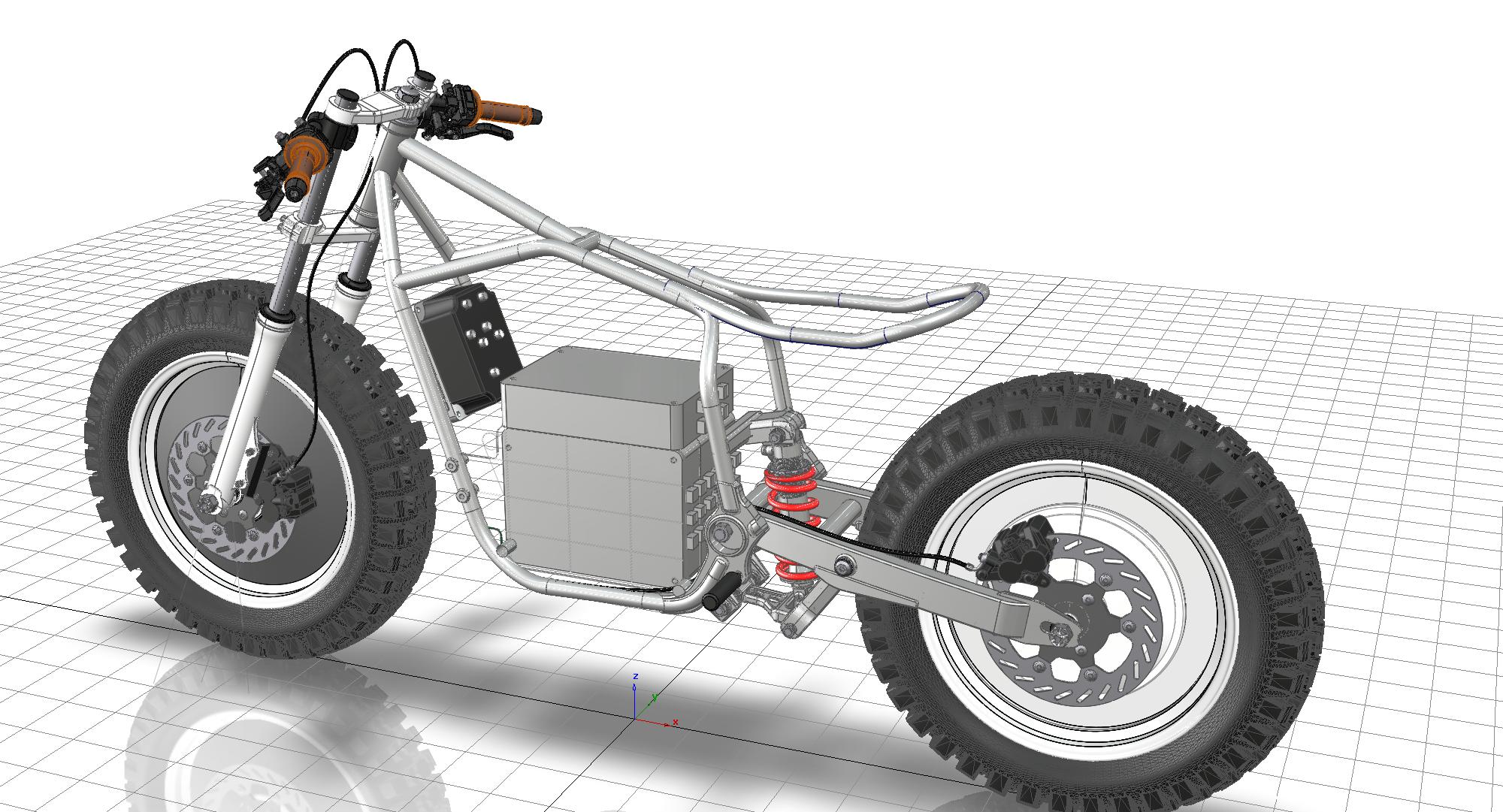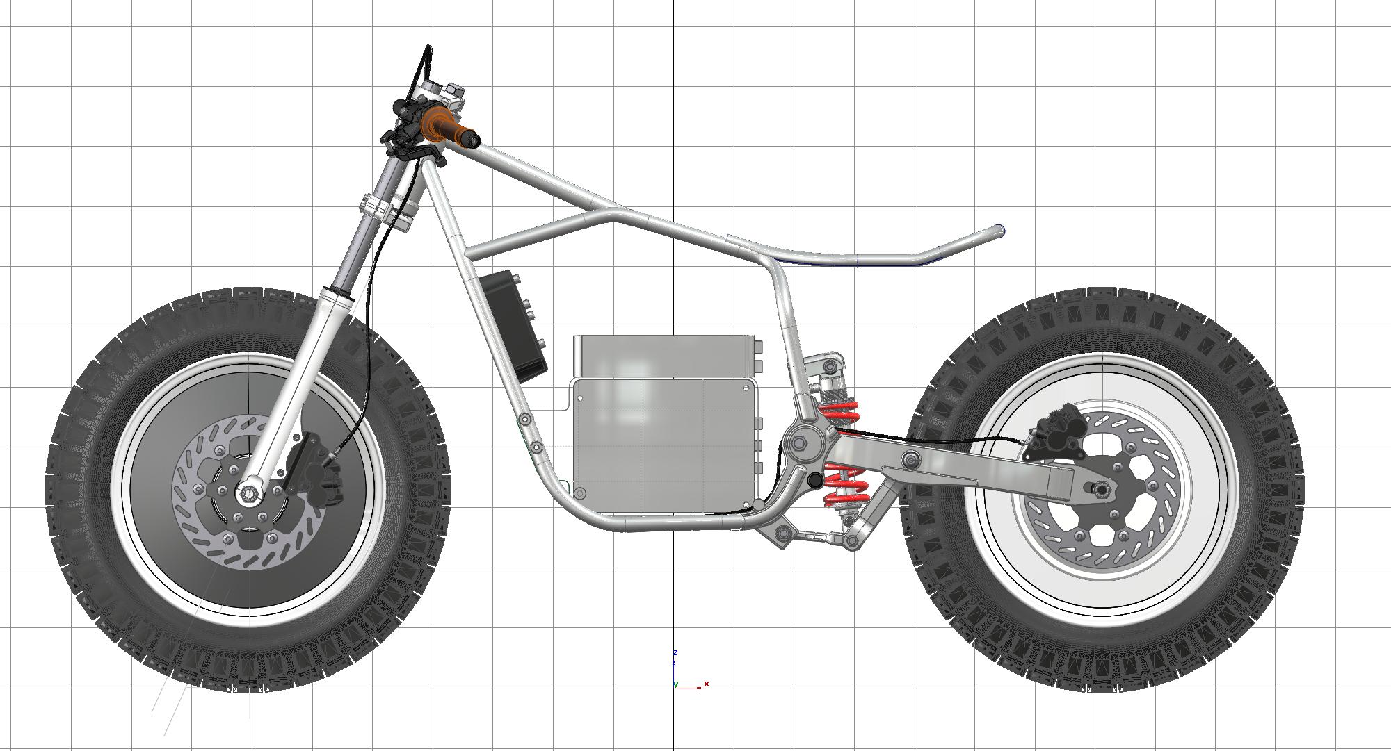 Some feedback from professional track racers, enthusiasts, and hobbyists have eluded to the fact that low CG (Centre of Gravity), with battery packaged under the frame would make turning difficult. Final decision by myself; ‘if it ain’t, broke don’t fix it’. That is to say that if I place the battery mass in a similar position to the original engine lump then it will help to maintain the driving characteristics of the original chassis. This in mind the layout (below in 3D) places the cells at the bottom of the frame.