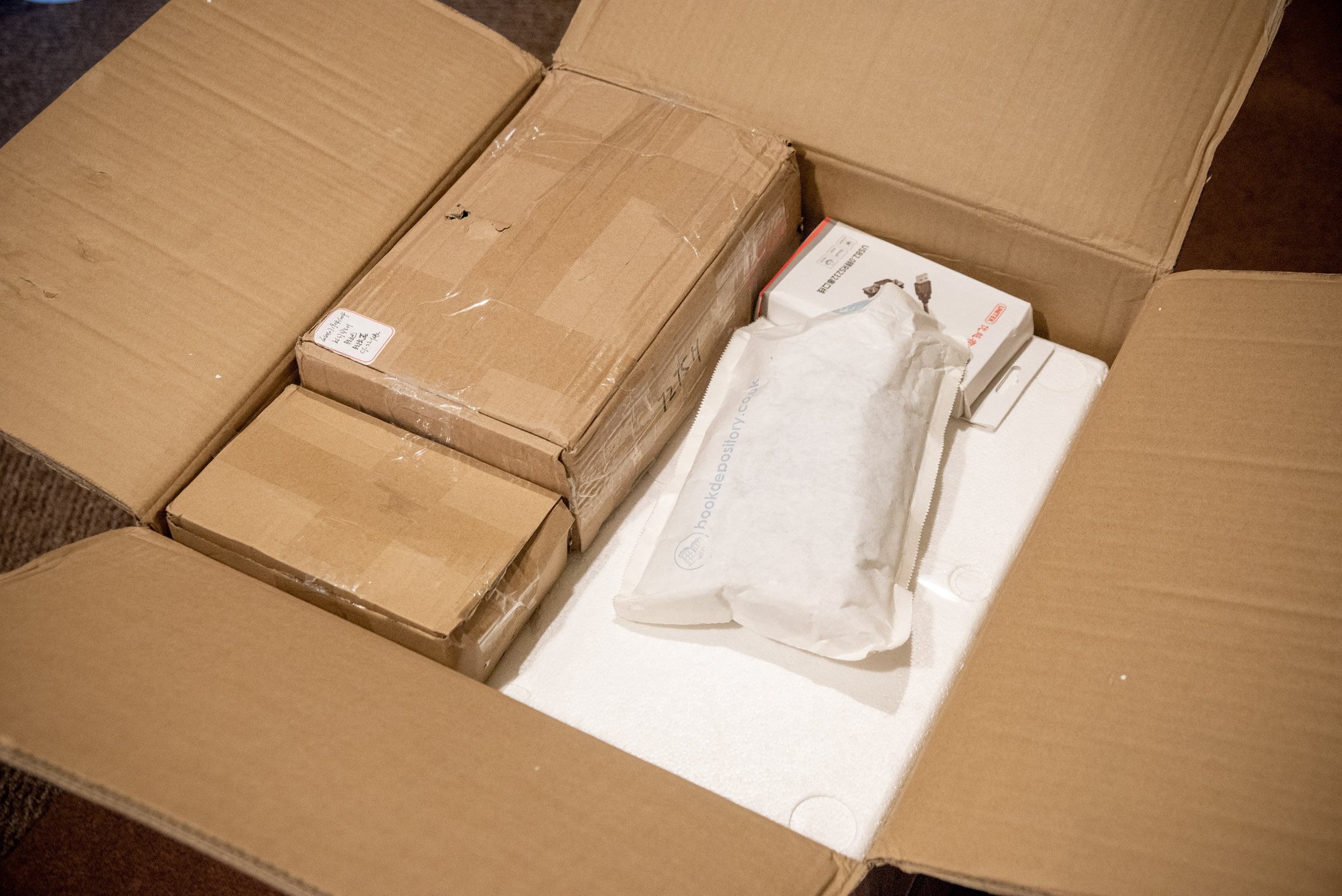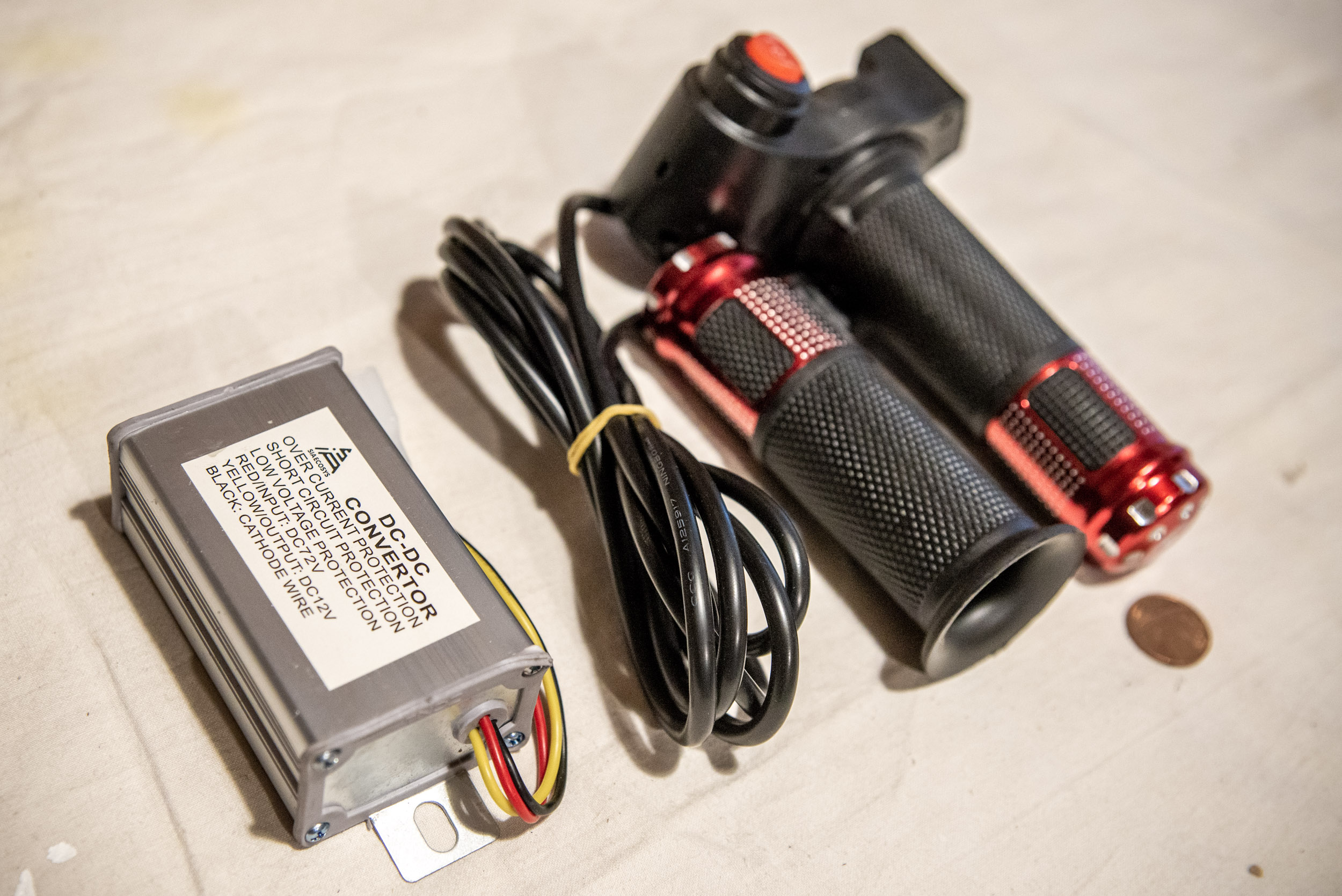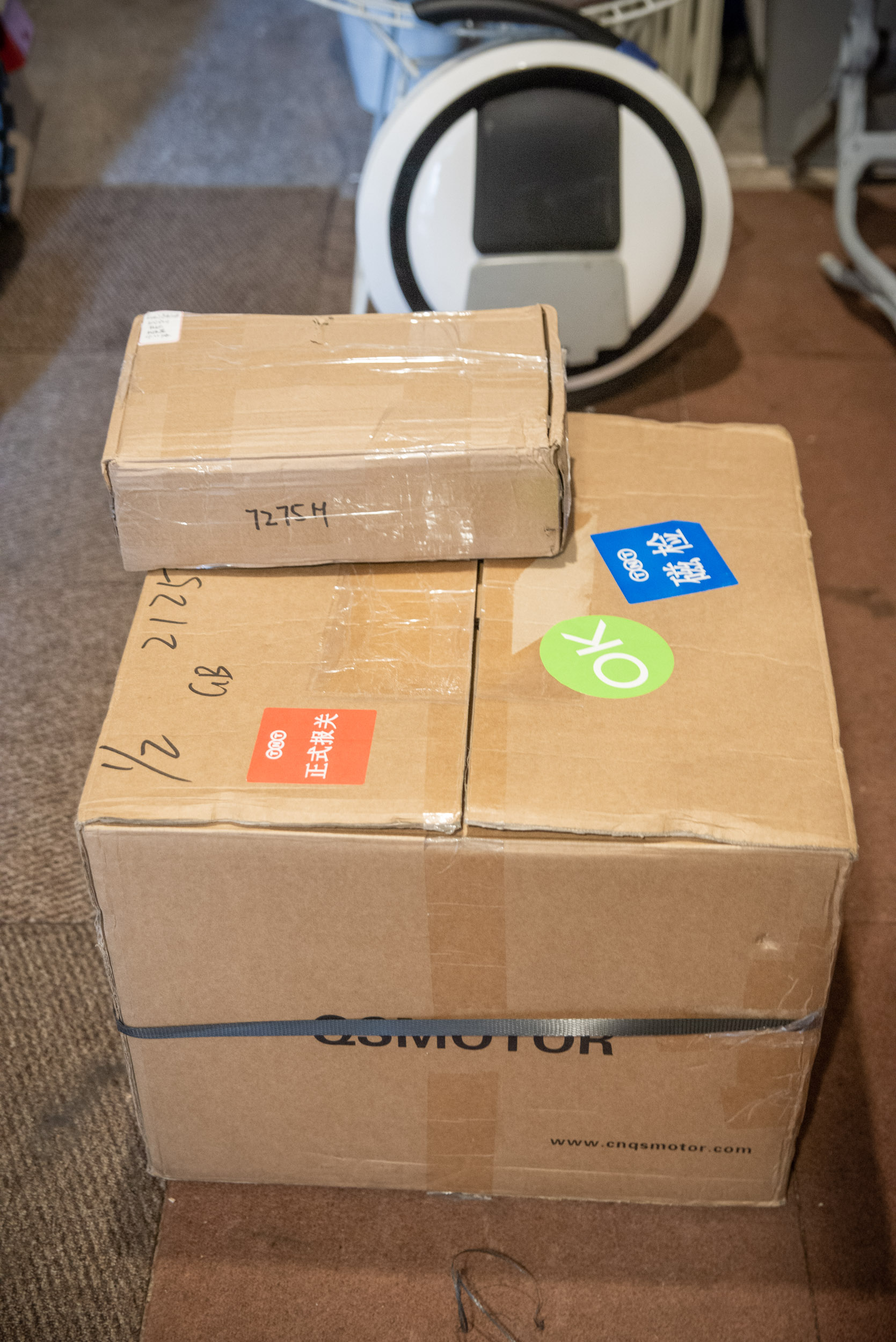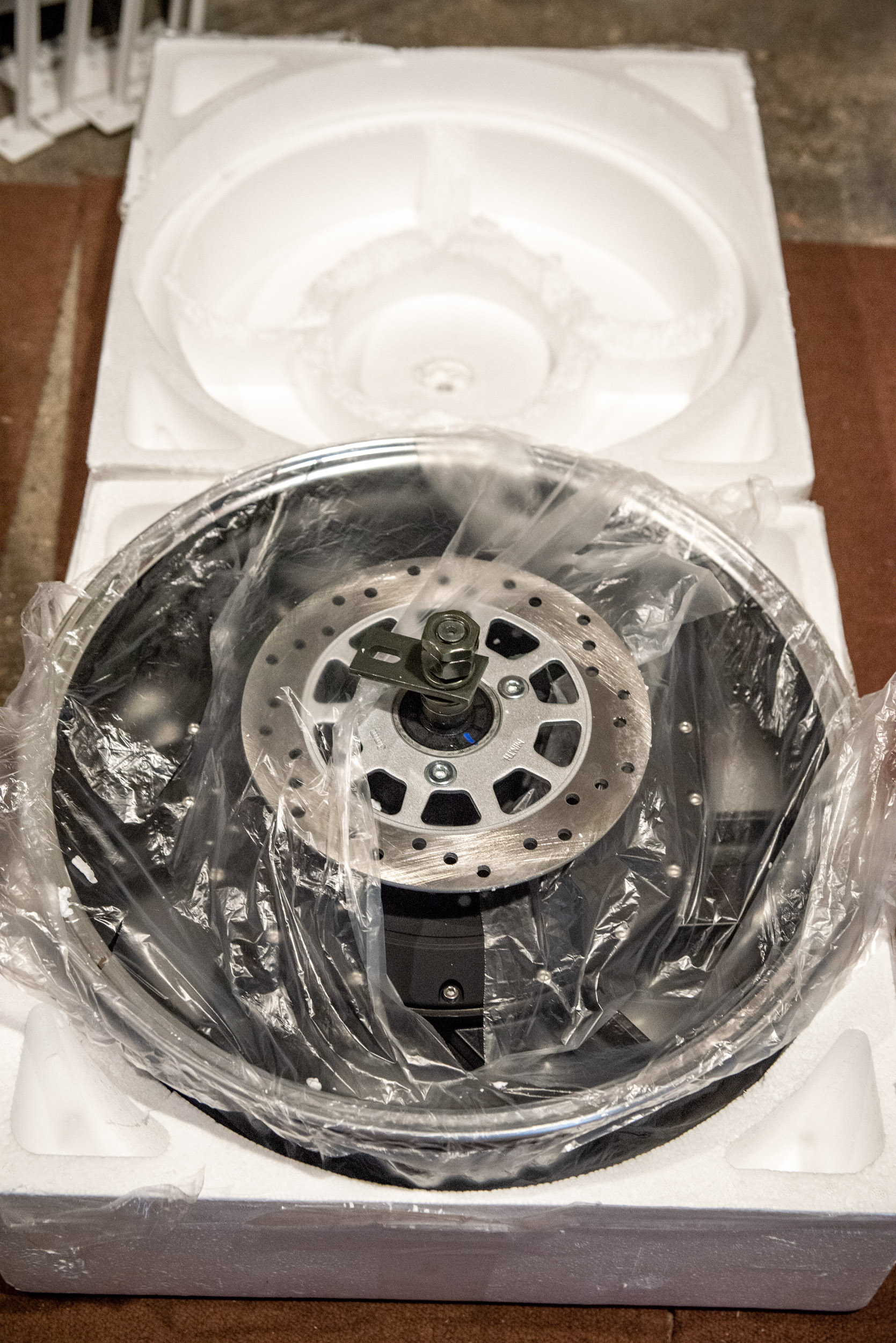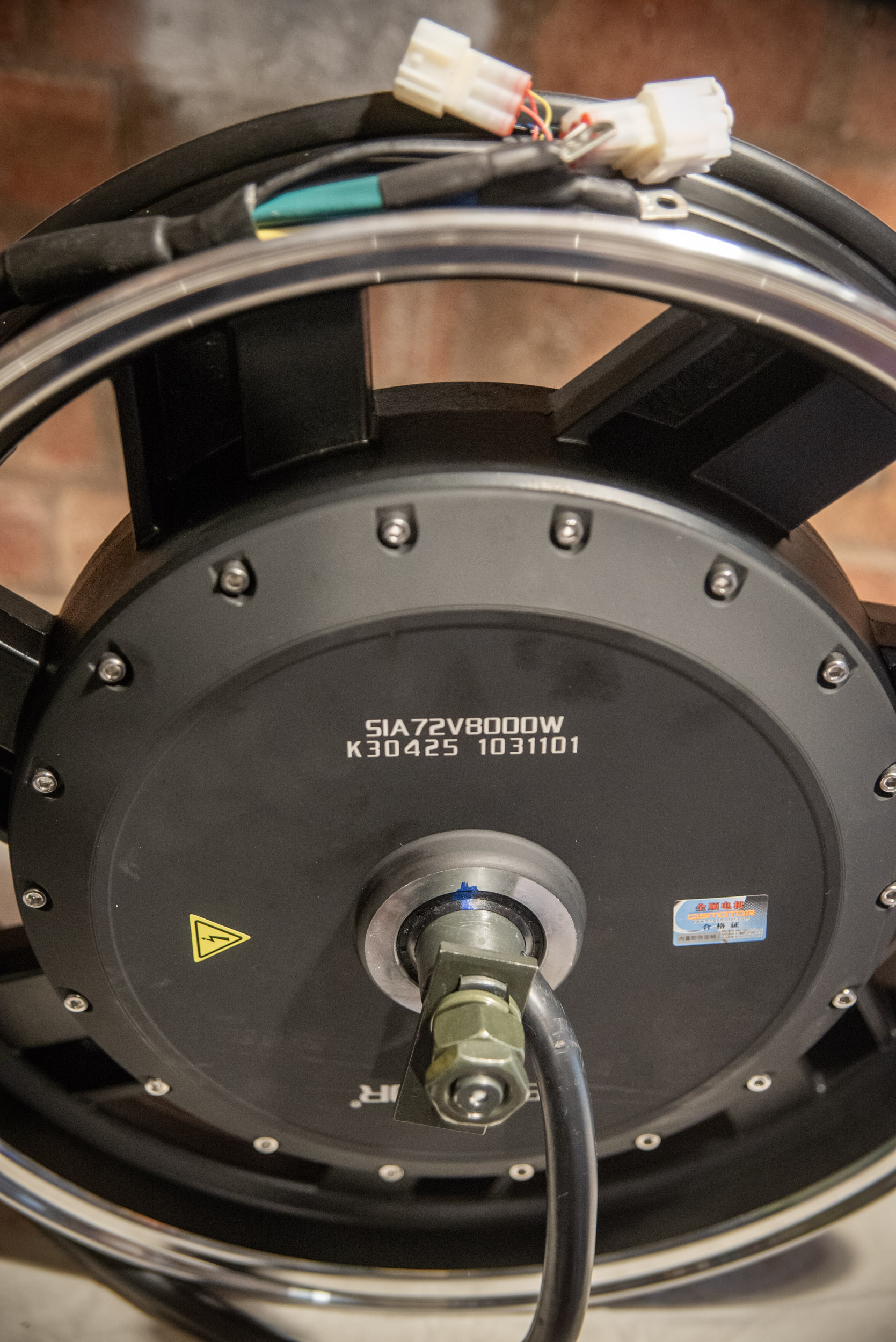 What’s in the sexy Chinese box? Time for a bit of unboxing. 17 inch Hub motor, throttle, DC 72v – DC 12v convertor, speedometer, and Kelly Controller. For some reason I imagined that the Kelly controller was smaller. Turns out that it is massive. Finally good to have it all in the flesh to offer them up to the frame to see how it’ll all work out.