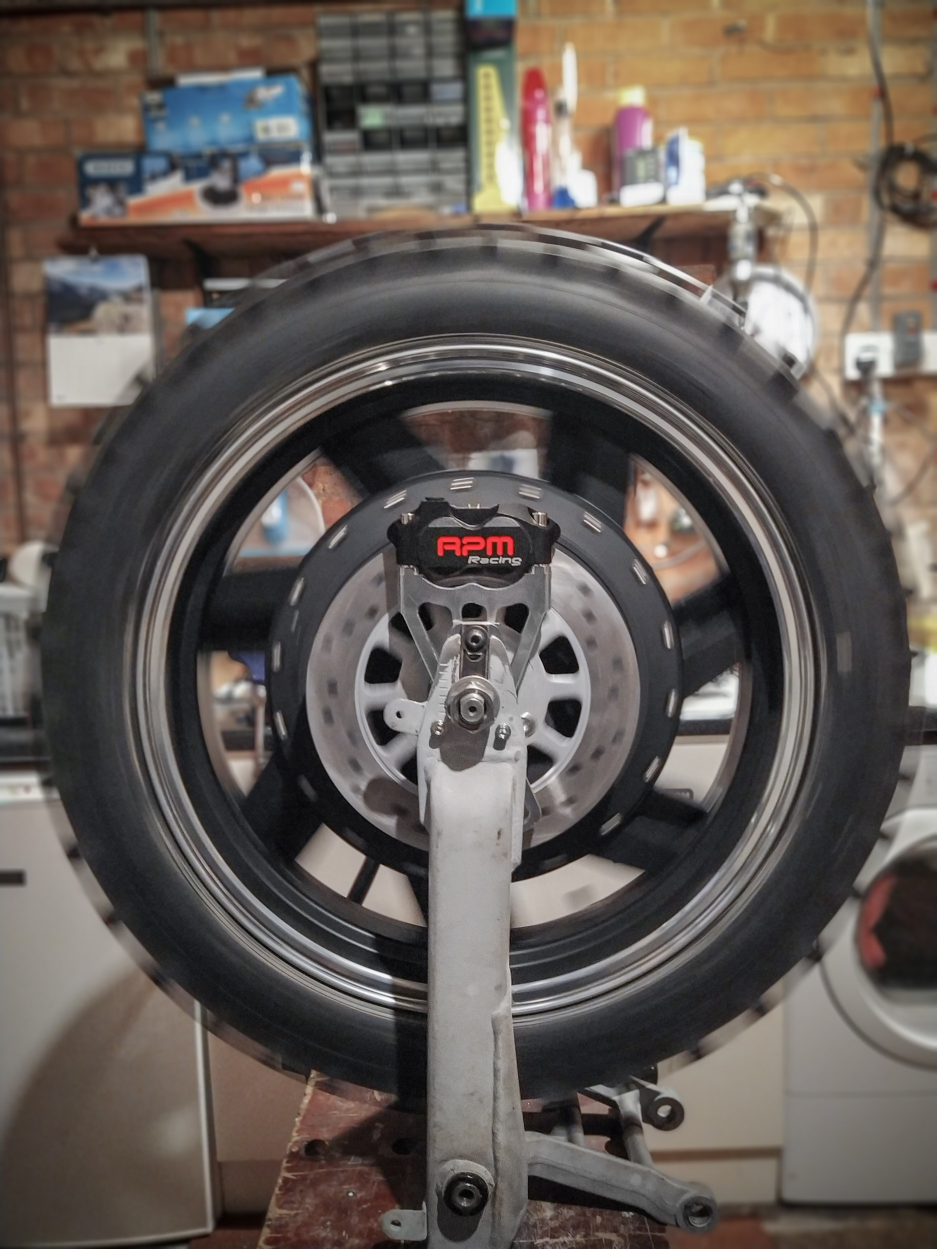Found an interesting rear caliper from an overseas supplier. Conversations with the E-Motorbike community have informed me that this caliper would fit the QS motor hub well, and after an evening of fitment I found that the community were correct. Hurrah! The rear swingarm needs some small modification, but i think these will be minimal. My only concern it the size of the caliper. However, most braking is done with front calipers in reality (70f-30r) and regen braking minimises wear on vehicle brakes on EVs so this caliper may be sufficient. Only testing will tell.
