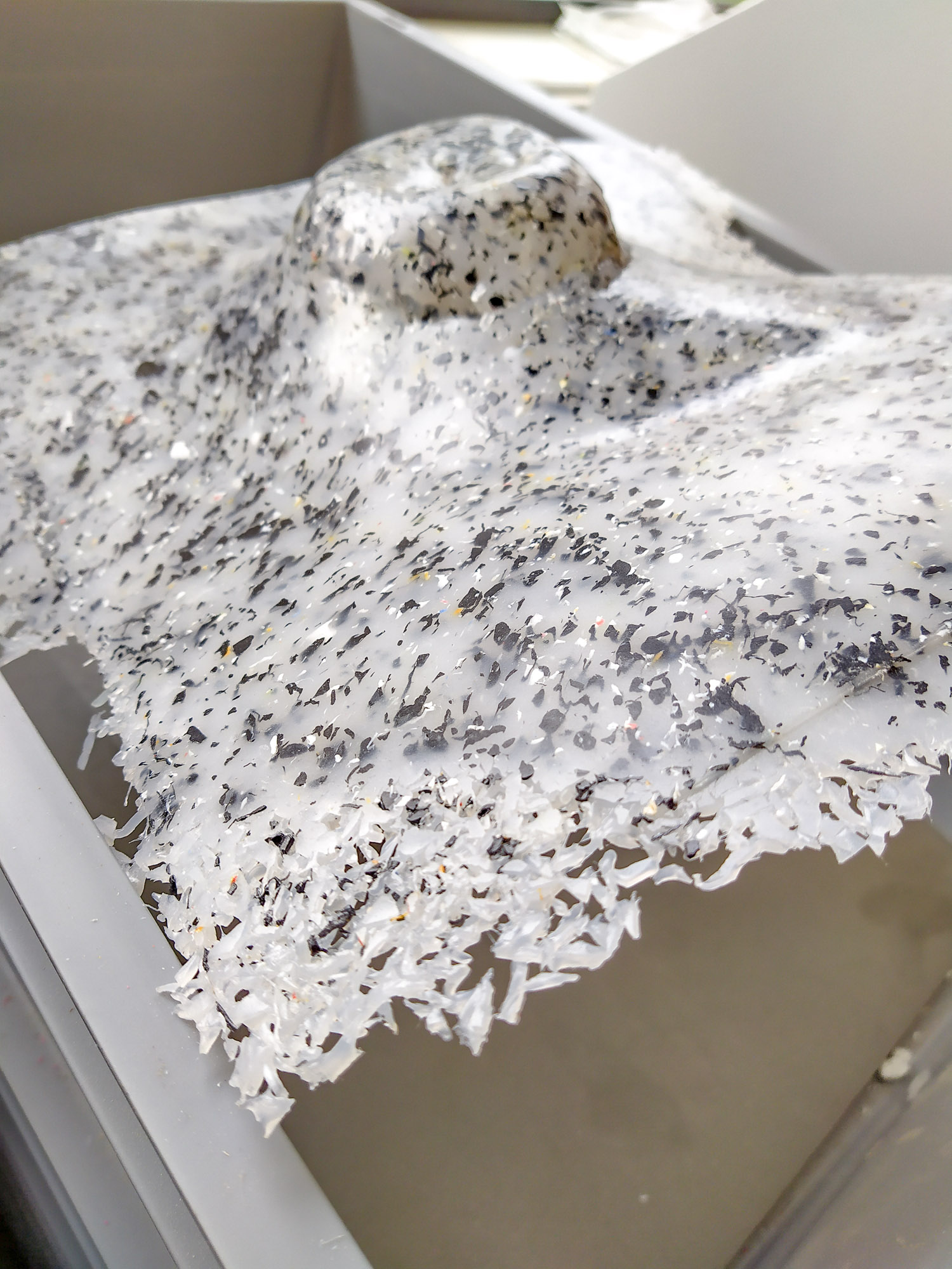 Found an R25 Schredder grinding machine in the university. In previous posts I have discussed the use of 2nd life material, exemplifying 3Devo as a solution process. Another process that might work well is vacuum forming for fast uncomplex parts. I am currently working on the battery box cover. I think it would be good to experiment with this mold to see if the results are usable. As well as self grinding material I have been informed that I can buy recycled HIP (High Impact Polymer) pre-ground material. Apparently, this might be more consistent, have less pollutants and yield superior results in the molding.