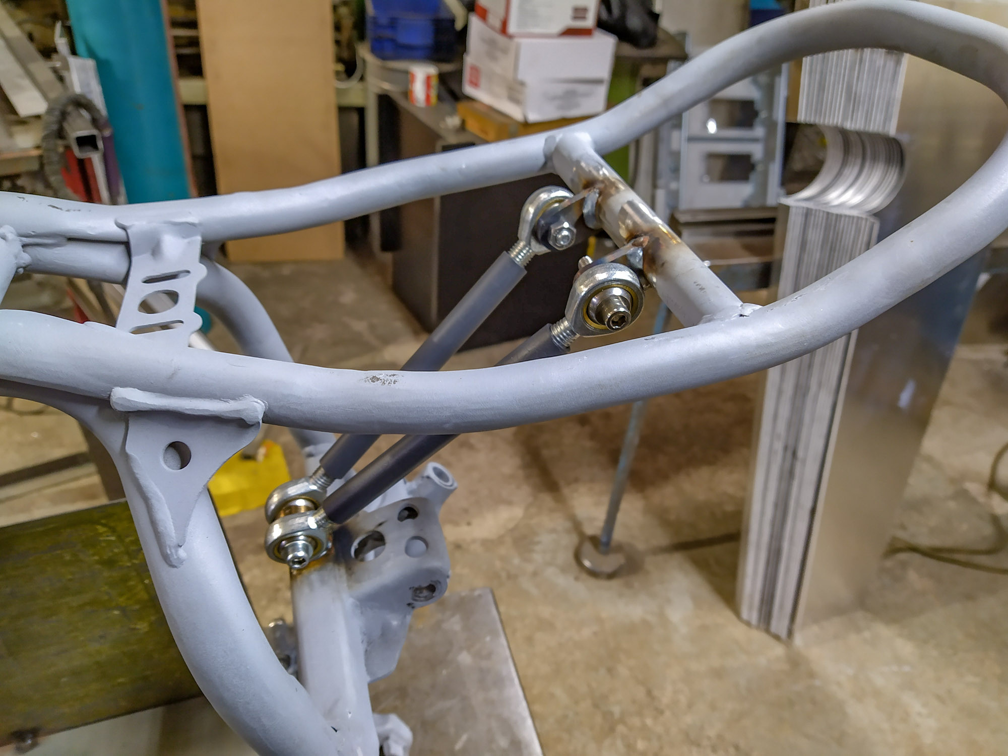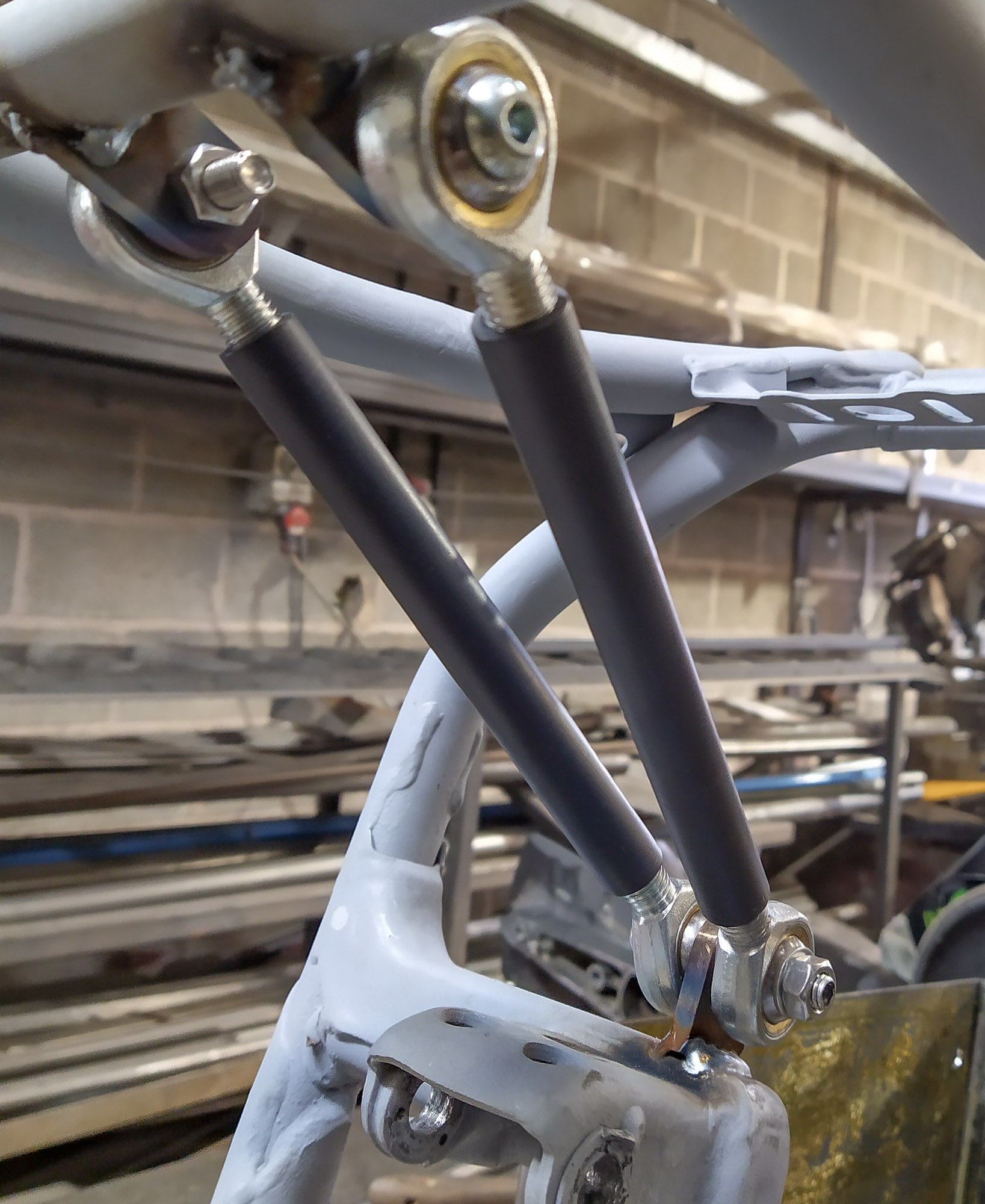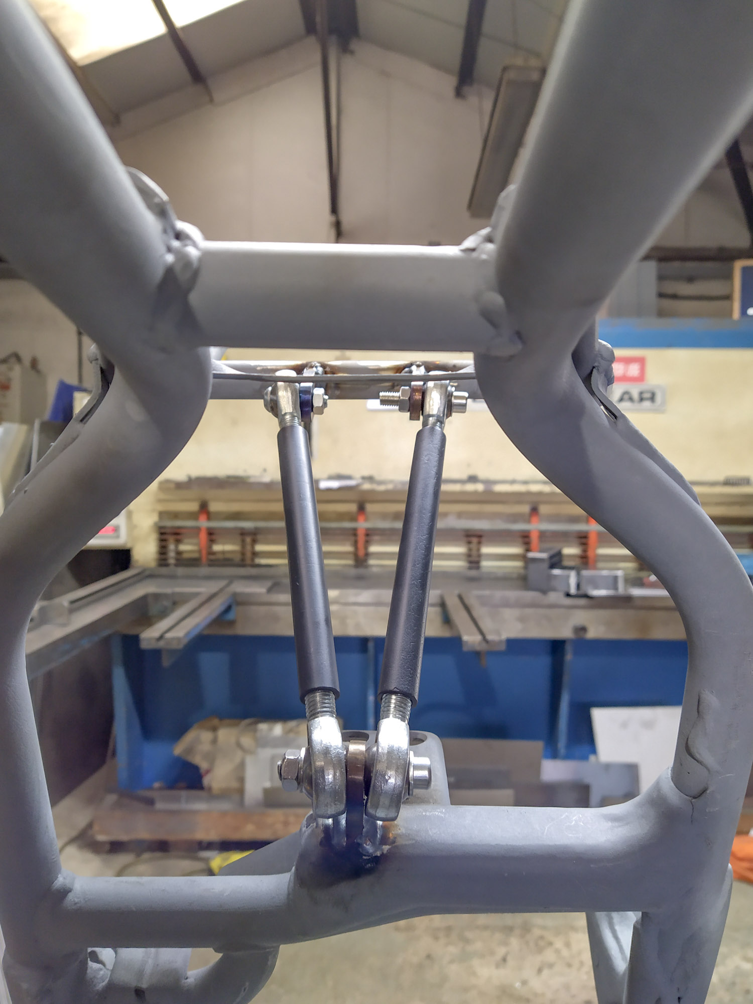 Have popped over to the fabrication unit to see how the welding is getting on. The lugs for the fabrication have been positioned… and attached. seems to work well, but will require a decent level of strut fabrication. will make the final rods out of steel. Will most probably move to m8 rod ends too as they are a better fit for the lugs