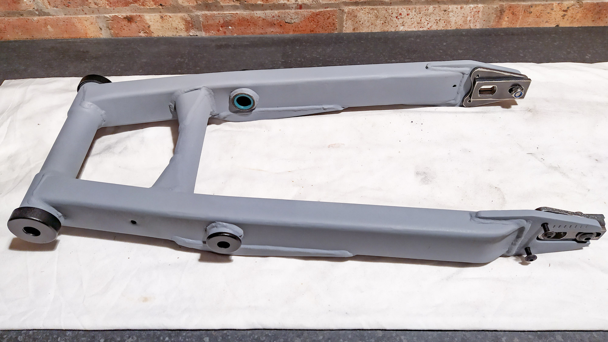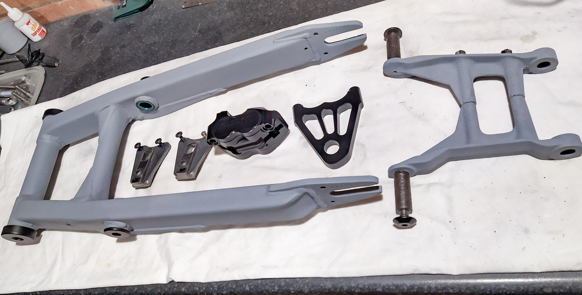 Have spent a bit of time finishing the rear brake caliper; removing the inside slot brackets and fixing. Also swapped the brake to the right side of the bike to help clear the hydraulic banjo. Still need a new rod, as because I am using the old linked aluminium thin rods. The clevis used was pinched from a pneumatic set-up from a control panel so this will also need to be replaced. Would be nice to replace the rose joint for a clevis end.