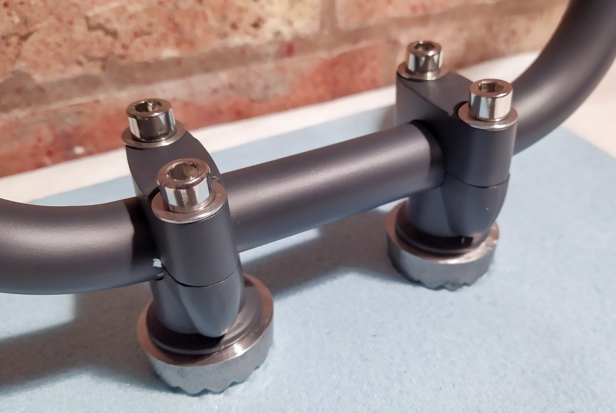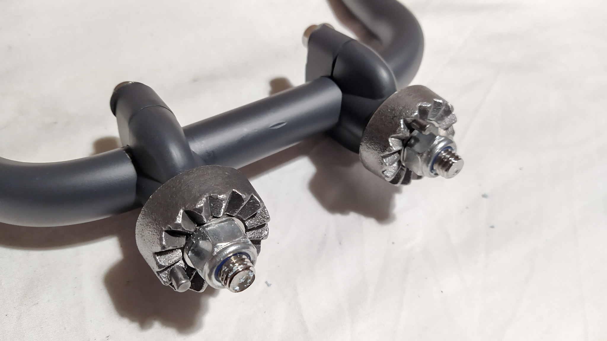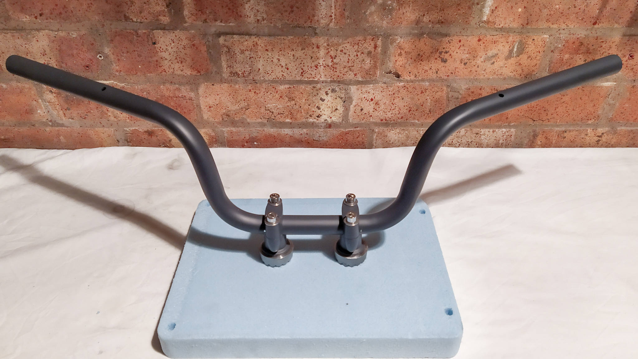 Found a couple of moments of time before the holidays kicked in. Started to think about options for seating posture. The height of the bars greatly effects body position on the bike so to consider raising the posture I have hacked the old handle bars to make some new mounting points with some rise bars I got from flying colours salvage, however the clamps are new (for the sake of safety). Could be interesting.
