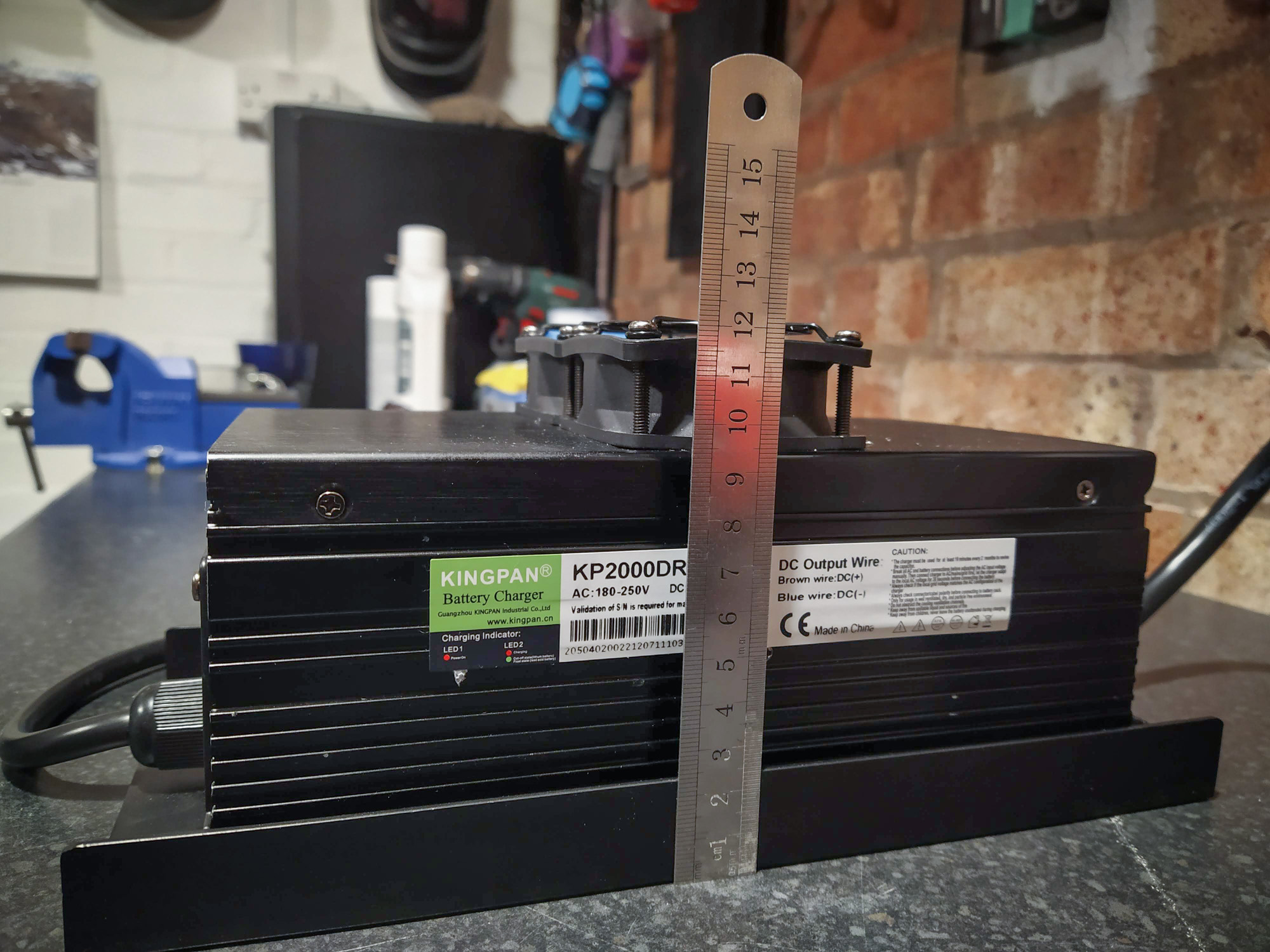 New charger has arrived. 20A 48v with 2sec precharge. I can finally get some dimensions on the fans to design the bottom covers, especially those behind the front wheel. Total height is about 125mm (inc. cooling fans). It is compact, but on the heavy side. need to design a new mounting bracket for it the battery case won’t hold this.