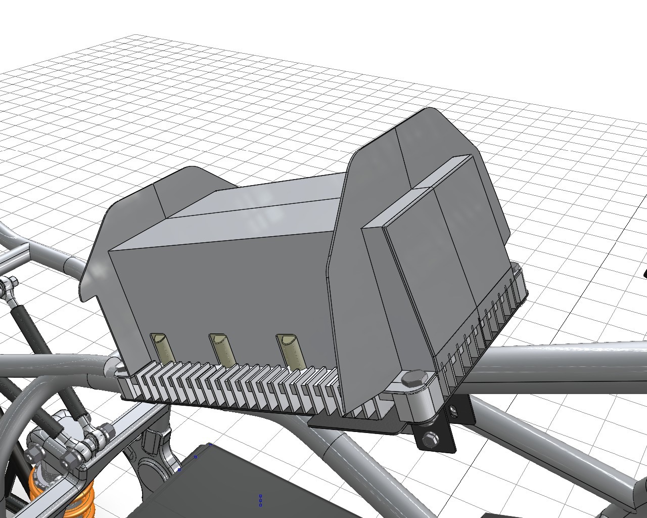 A finally think i have a final part and pattern to lasercut for the controller subframe. versions 3 and 4 had minor tweeks and changes. however the latest revision is modelled to 1.5mm thickness steel. and covers the controller better while still allowing the wires to run out of the controller pics and pattern below. Next step — fabricator to run a text cut.