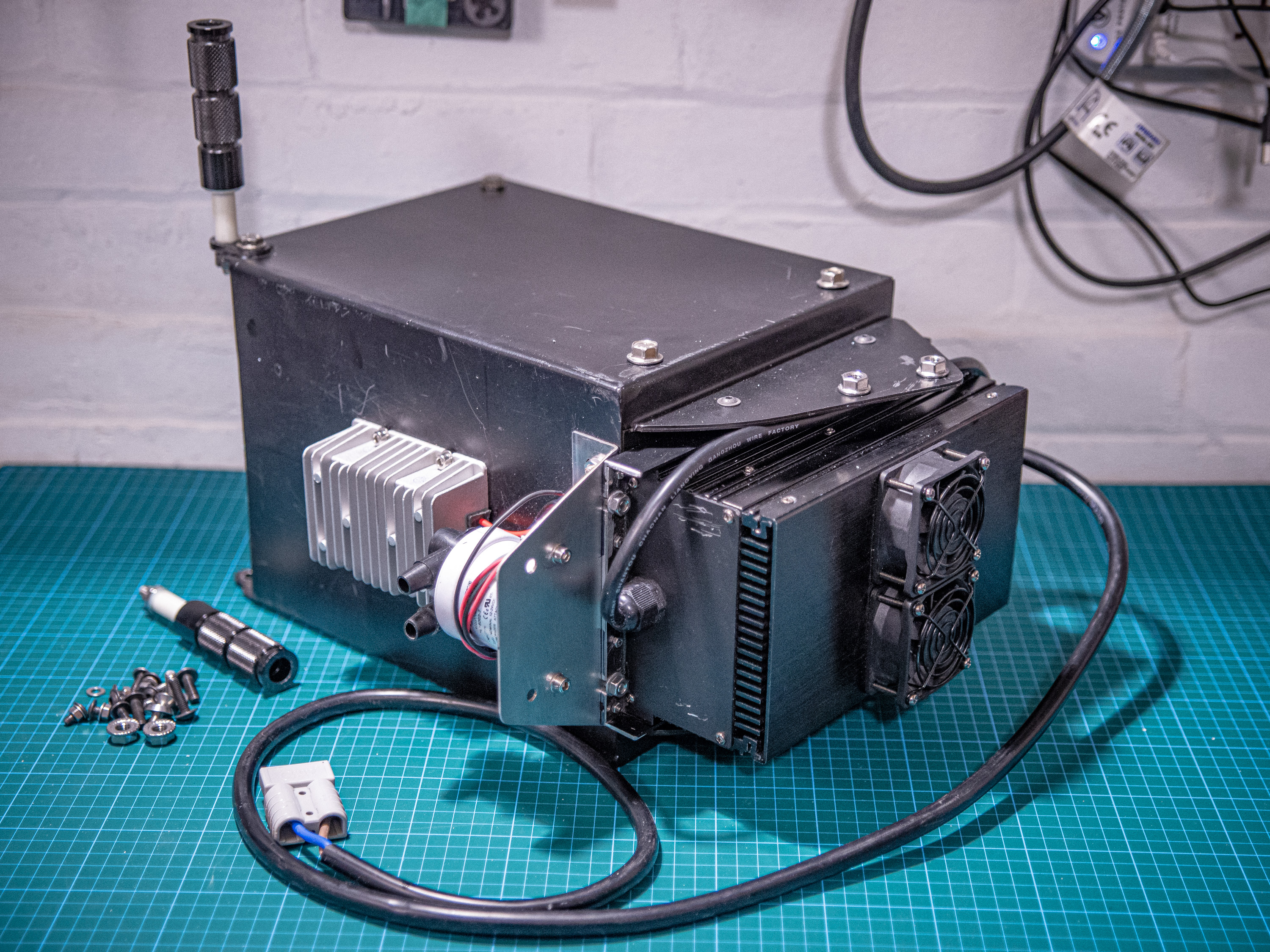 Started to reconfigure the components of the battery box. added DCDC convertor for 12v supply and have moved the connector behind the L-shape bracket that also holds the charger. The battery case is looking a bit worst for ware after being offered up to the frame so many times but nowt a lick of flat sand and paint won’t solve at the end of it all.