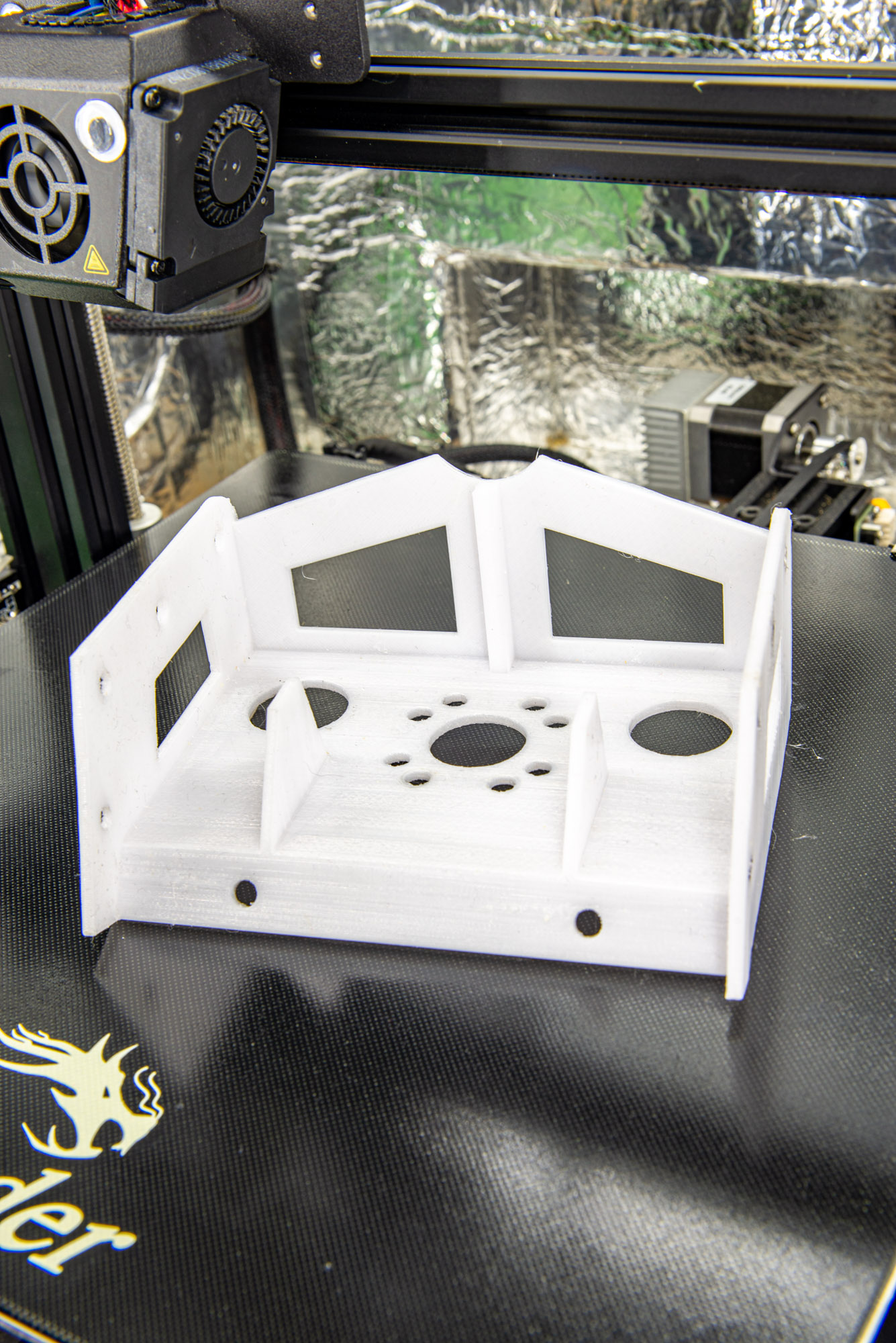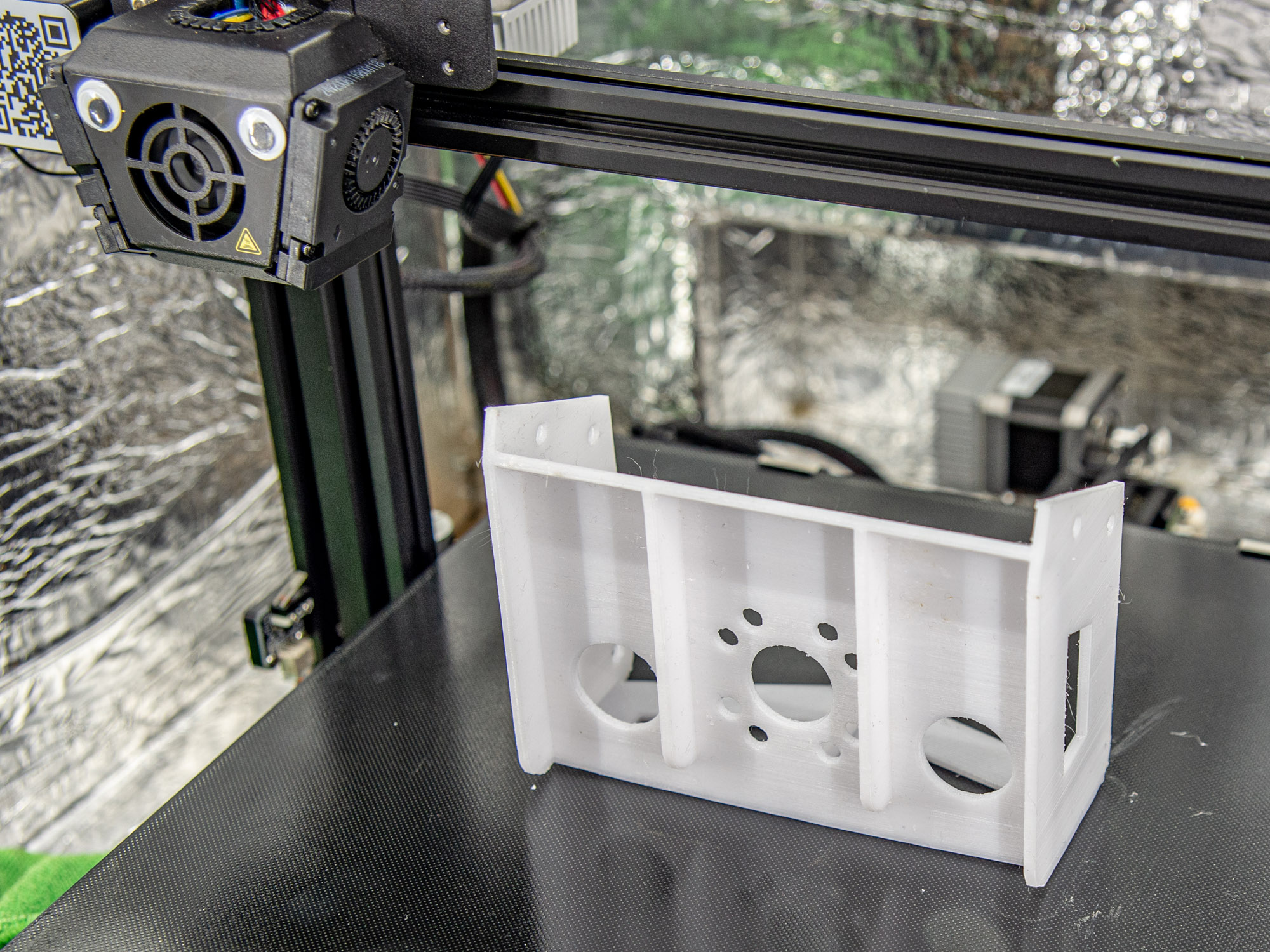 Need to start mounting some of the components that are just hanging around at the moment. I have put something together in CAD quickly and spent a bit of time with the printer. Have tried a new material rPETG that has a substantially higher temperature and water resistance and has excellent ductile strength making it a bit more like ABS, but without the issues of warping, etc . It’s a bugger to work with but got the hang of it eventually.