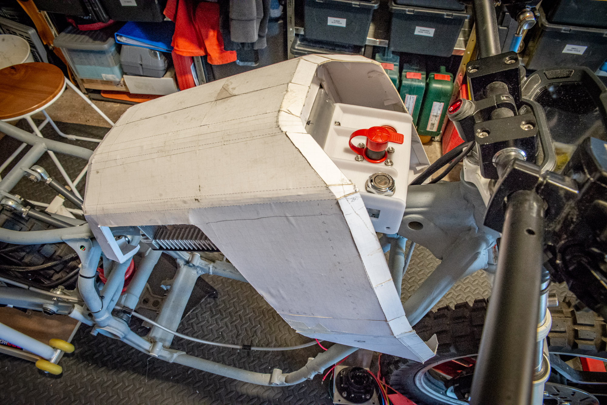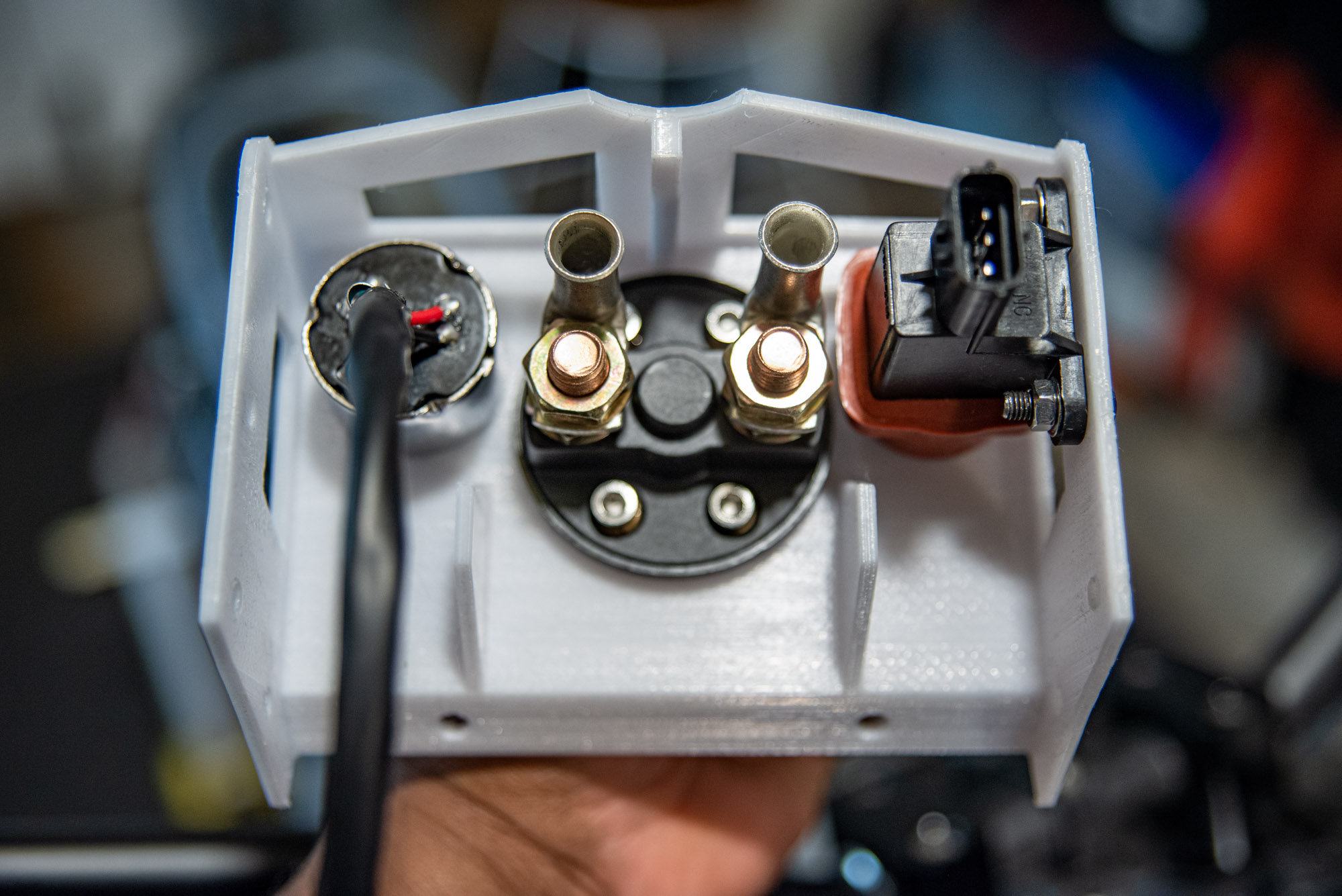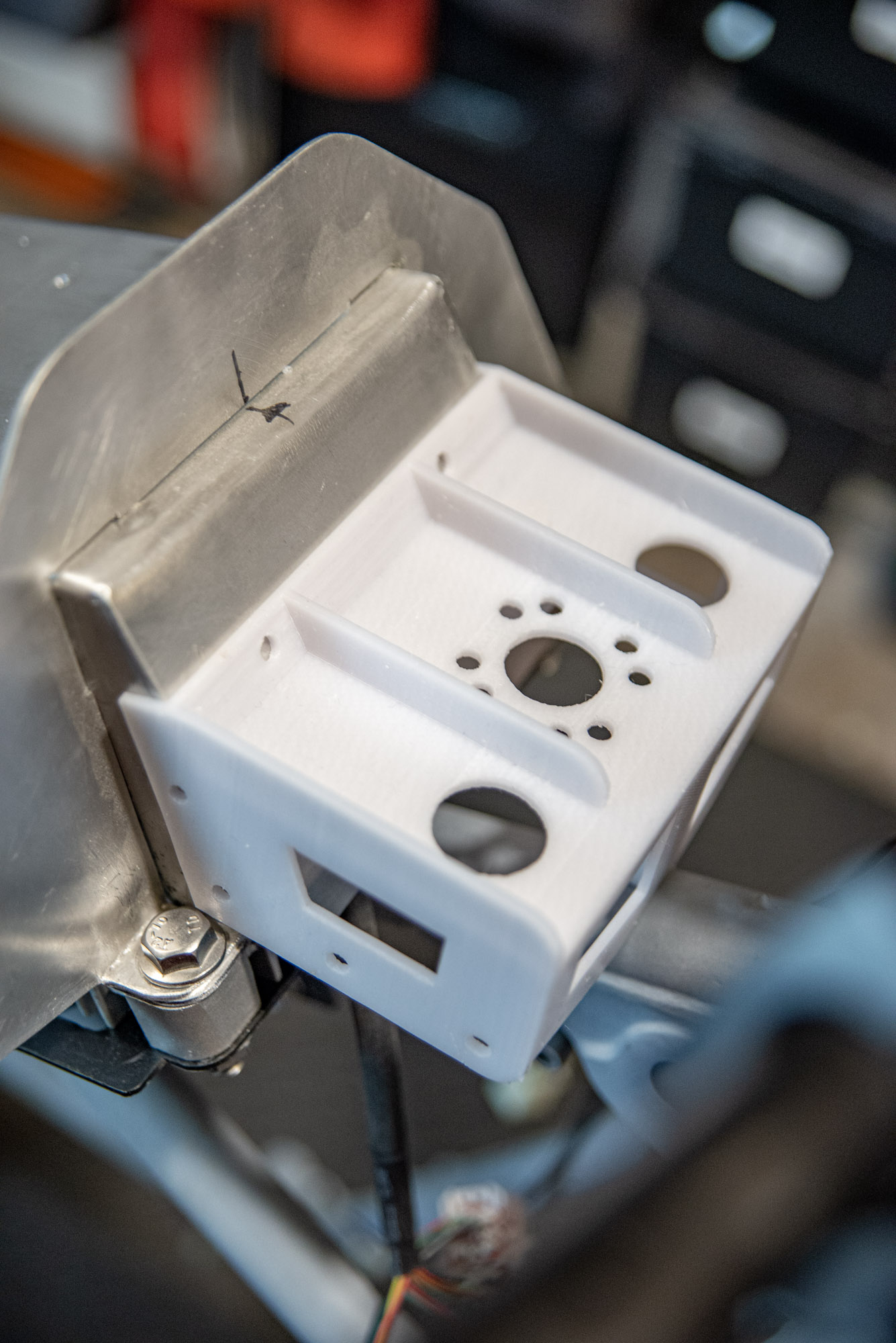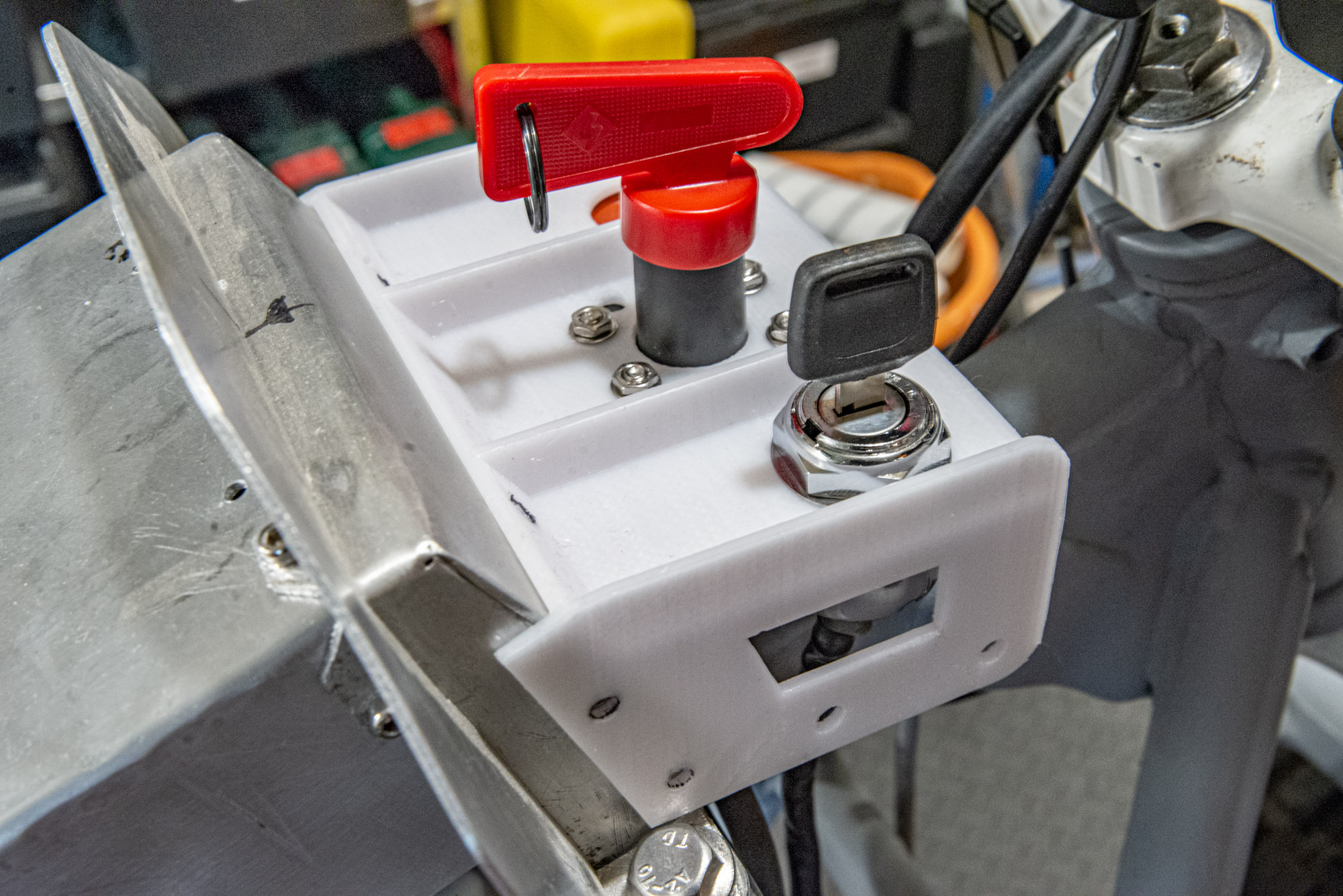 Edit: managed to bolt the part to the aluminium controller case and aligned the inertia switch — all good. Looks interesting with the mock cover on. maybe some extra sketch work for the front cover that half acts as a vent for the controller is due to resolve the forms overall.