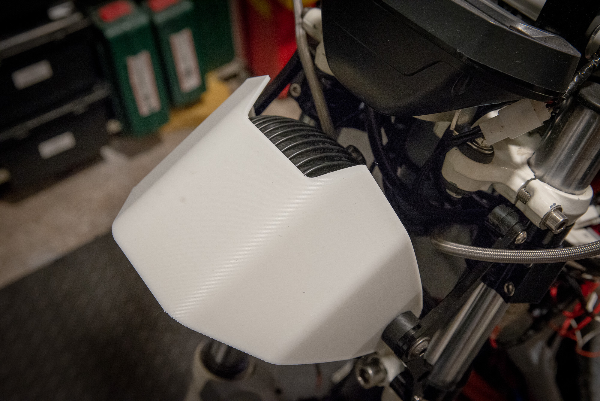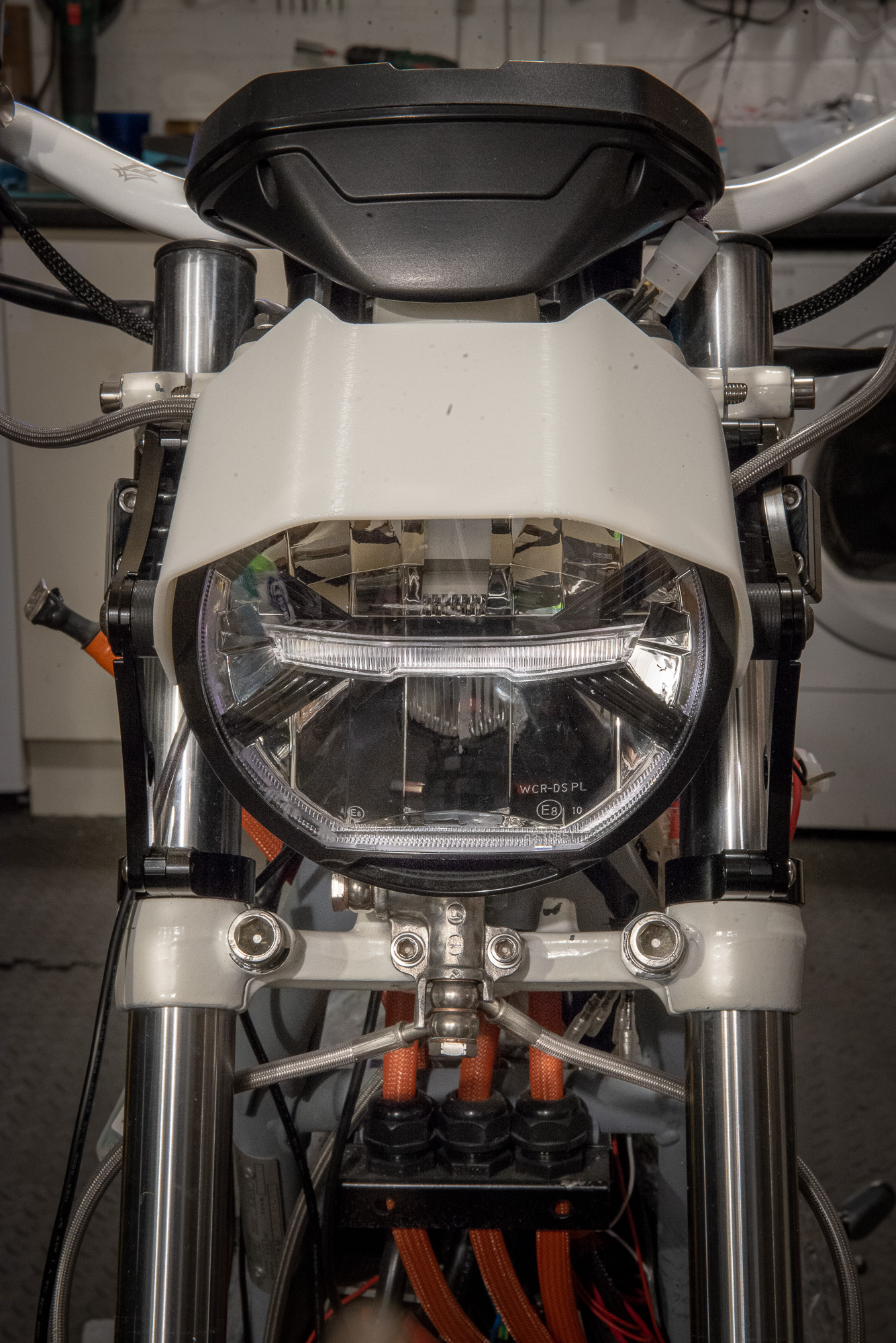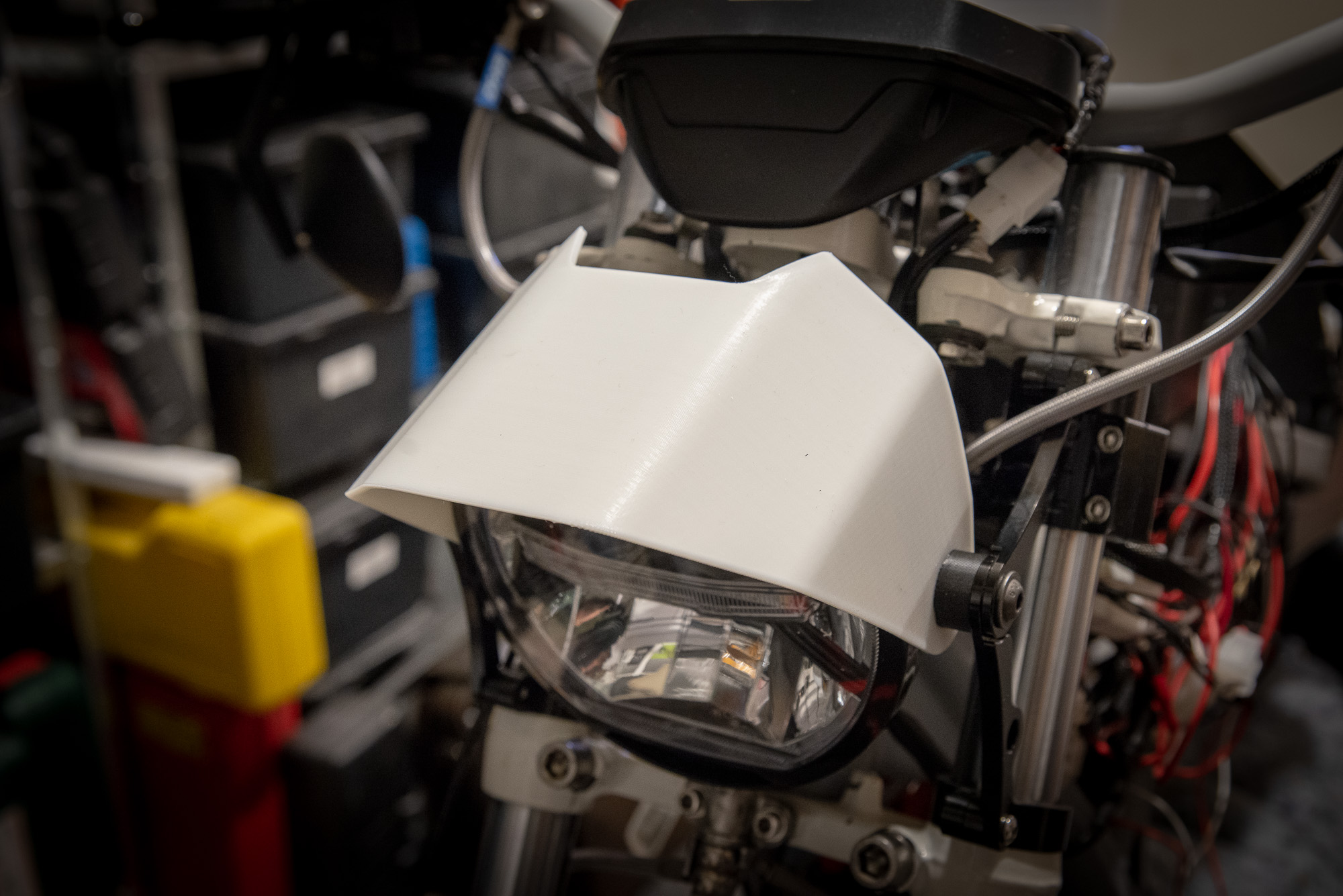Taking a rest from the seat I decided to have a look at another part of the bike. I have been searching for an option for the lighting. I have taken a couple of bench marks and have even bought some items to make some physical comparisons. One design direction that I have been attracted to is a modern-retro style. Eventually I came up with a visor option. I printed out a version and I’m not completely unsatisfied with it. A bit of 1930-40s modernised? It’s not exactly a fly screen to cover the dashboard, but I kinda like it. It needs some refinement but I think it is a direction to follow.