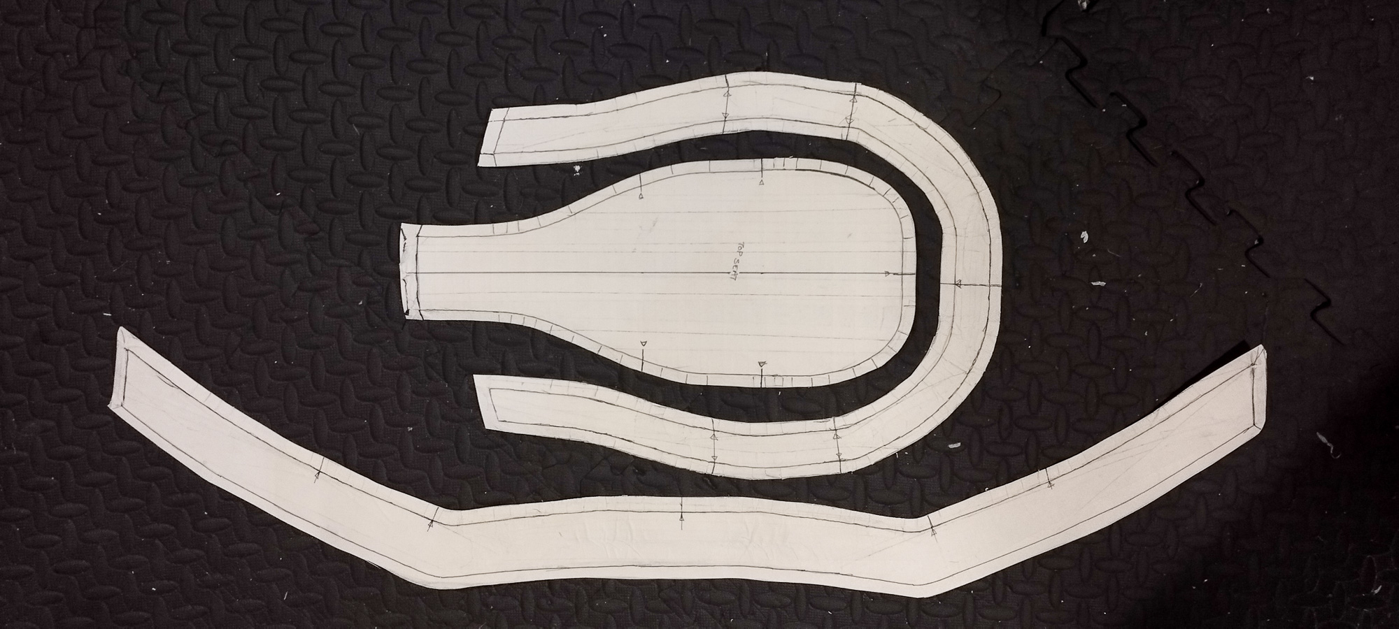 Initially I made the pattern by laying masking tape on the 3D print then cutting it out. Have now transferred the pattern to proper pattern paper in a workshop.
